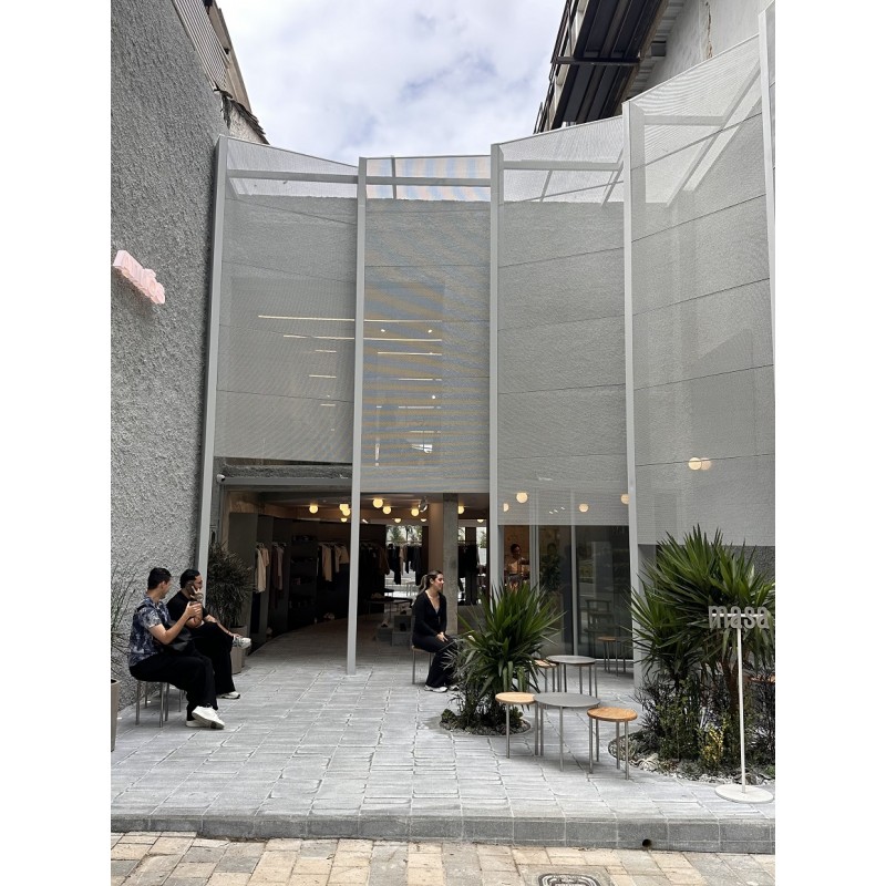 El primer café lo abrió en la nueva tienda de Atmos, la marca de ropa deportiva colombiana, en El Poblado. El diseño fue realizado por Benjamín Cadena, arquitecto colombiano y fundador de Studio Cadena, estableciendo una conexión entre funcionalidad, estética y la experiencia del usuario.